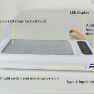 ✔ Dual Purpose: Can also serve as a flashlight (if applicable) or emergency light in low-light conditions.Power capacity: 10000mAh